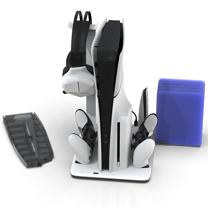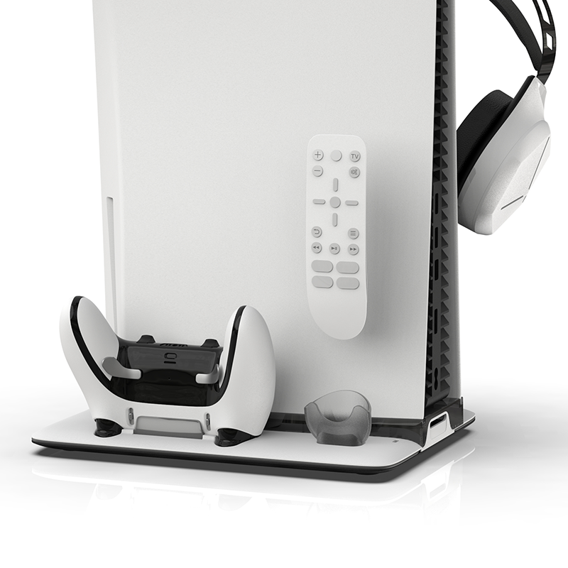 Stylish design compliments all PS5 Consoles perfectly. Discreet slimline platform with a drop and charge functionality for DualSense® and DualSense® Edge Controllers. 3 Speed cooling fan moves heat away from the console. Additional storage for your gaming headset, media remote and games is also included.